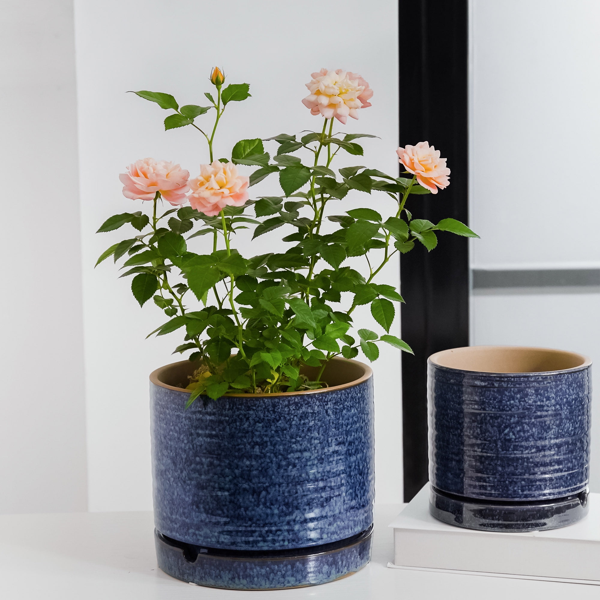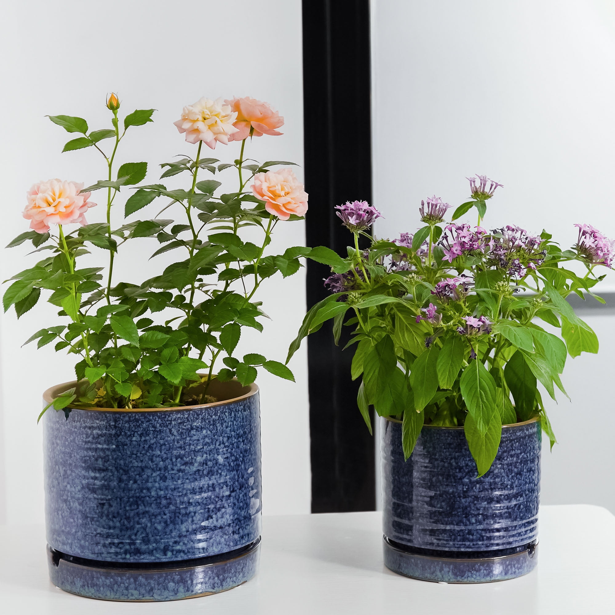 Amazon Com Carlton Lane Valencia Ceramic Indoor Flower Pots For Plants Indoor Garden Planters With Drainage Holes Set Of 2 Beautiful Small Plant Pots Teal Patio Lawn Garden